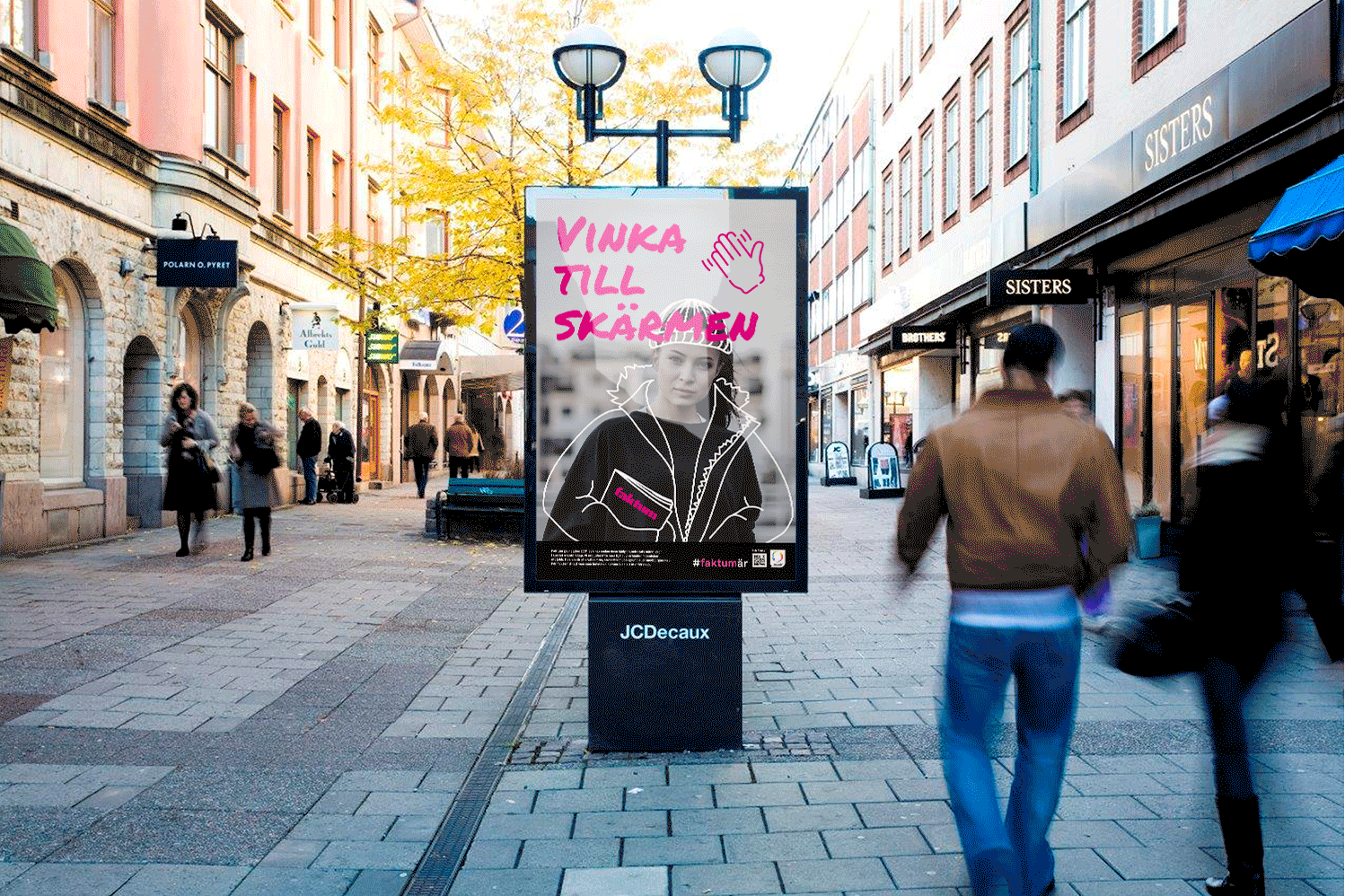 Vår lösning kretsade kring en stark kampanjslogan med ett kompletterande formspråk för att uppmärksamma och öka medvetenheten kring Faktum, och för att minska avståndet mellan faktumförsäljarna och målgruppen. Arbetet blev mycket uppskattat och vi slutade som en av tre framröstade finalister, där röstningen som skedde av branschrelaterade gäster under en vernissage på Pustervik blev rekordstor.