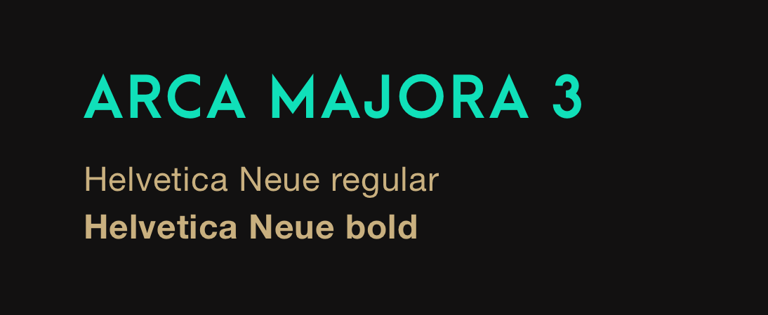 Vi valde att använda oss utav ARCA MAJORA 3 som rubriktypsnitt. Med sina vassa kanter och tydliga linjer kompletterar typsnittet vårt tillhörande symbolspråk.